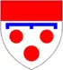 Argent, on a chief sable three cinquefoils of the field | Downton[lower-alpha 3] |