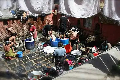 People of Nepal can be seen drinking and washing themselves or their laundry in a hiti, or taking the water home for washing, drinking and cooking.