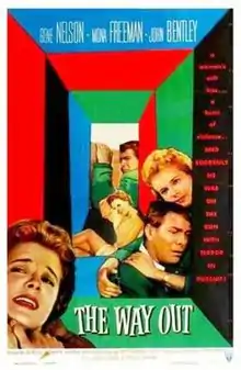 Dial 999 is a 1955 British crime drama film directed and written by Montgomery Tully based on the novel of the same name by Bruce Graeme.[2] Produced by the British company, Todon Productions, it was shot at the Merton Park Studios in London. RKO Radio Pictures purchased the rights to distribute it in the United States, where it was released in a cut form as The Way Out on 11 April 1956. The film stars Gene Nelson as Greg Carradine, Mona Freeman as Terry Moffat Carradine, and John Bentley as Detective Sergeant Seagrave.