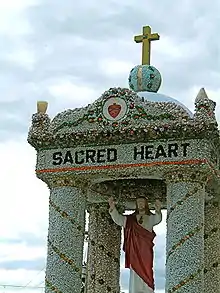 The Dickeyville Grotto was built by Father Mathius Wernerus, the pastor of Dickeyville's Holy Ghost Parish, from 1920 to 1930. It was renovated between 1995 and 1997.[1] The site includes the Grotto of the Blessed Virgin, Christ the King Shrine, Grotto of the Sacred Heart, the Eucharistic Altar, the Holy Ghost Tree, the Patriotism Shrine and the Crucifixion Group.