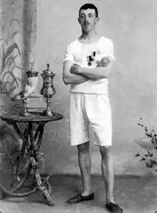 The award was created by James F. Dickson, a stable master or equerry for the royal court.[1] Dickson had previously given an award for the best runner of the English mile as part of a public sports festival in Gothenburg as early as 1887. A Swede, H Lönnroth, was the first known winner of the award with a time of six minutes and two seconds, competing against one other man in heavy rain. No trophy was provided to Lönnroth given the lack of competition and slow performance. The first trophy proper was given in 1891 as part of the sports festival at the Svea Life Guards sports ground. Hans Haugom, a Norwegian, won the event and returned to win again the following year. Patrik Löfgren of Sweden won three years in a row from 1892 to 1894 and was awarded the trophy permanently as a result.[2]