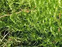 Dicranum is a genus of mosses, also called wind-blown mosses or fork mosses. These mosses form in densely packed clumps. Stems may fork, but do not branch. In general, upright stems will be single but packed together. Dicranum is distributed globally. In North America these are commonly found in Jack pine or Red pine stands.
