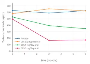 DES has at least three mechanisms of action in the treatment of prostate cancer in men.[66] It suppresses gonadal androgen production and hence circulating androgen levels due to its antigonadotropic effects; it stimulates hepatic sex hormone-binding globulin (SHBG) production, thereby increasing circulating levels of SHBG and decreasing the free fraction of testosterone and dihydrotestosterone (DHT) in the circulation; and it may have direct cytotoxic effects in the testes and prostate gland.[66] DES has also been found to decrease DNA synthesis at high doses.[66]