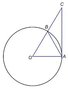 The area of the circular sector OAB is , while the area of the triangle OAC is given by