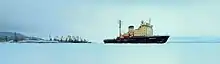 In 2019, Dikson towed the floating nuclear power plant Akademik Lomonosov to Pevek.[18] The convoy left Murmansk on 23 August and sailed 2,640 nautical miles (4,890 km; 3,040 mi) along the Northern Sea Route until arriving to its destination on 10 September ahead of schedule.[19]