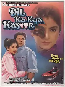 Dil Ka Kya Kasoor (transl. What is the fault of heart?) is a 1992 Indian Hindi-language musical melodrama film directed by Lawrence D'Souza. It stars Divya Bharti and debutant Prithvi with Suresh Oberoi, Sanam and Laxmikant Berde in supporting roles.[1] The music of the film, from the duo Nadeem-Shravan, was an instant hit due to its catchy melodies.[2]