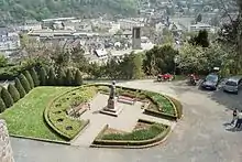 In 1875, the Wilhelmsturm (tower), views from which can be seen in this article, was completed on the Schlossberg. It is today the town's landmark. The "casemates" under the former stately home are among the biggest defensive works in Europe. They have been partly excavated and may be toured.