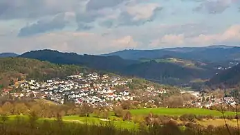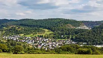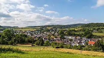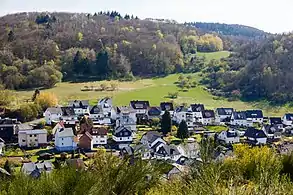 The village, whose livelihood was once based on mining, lies among the other constituent communities of Nanzenbach, Oberscheld and Niederscheld. Its healing spring, whose water is heavy with iron, makes the village a favourite among locals. At Eastertime, it is decorated.