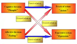 • affective behavior, conducted by cognitive and motivational components;[40]