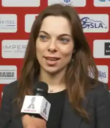 Belenkaya also played on the same SDYUSSHOR SHSH team for the European Club Cup for Women. At the 2015 event, SDYUSSHOR SHSH finished in seventh place out of twelve teams.[60] They finished in seventh place again the following year in 2016, this time out of fourteen teams.[61] Like the national competition, Belenkaya had a better result in her second appearance, scoring 4½/7 and gaining rating points in 2016 compared to a score of 3½/7 in 2015 that lost her rating points.[62][63] Belenkaya's best team result was in 2018 when the competition was divided into a two-group six-team round-robin stage and a three-group four-team two-round knockout stage in which the groups were determined by the round-robin placings. SDYUSSHOR SHSH qualified for the top knockout group and finished in fourth place.[64][65] Belenkaya did not have a good performance individual in 2018 or 2019, losing rating points in both instances.[64][66][67] Nonetheless, her 2018 win against higher-rated Stavroula Tsolakidou helped earn her team a draw in the opening round of the round-robin stage.[64]