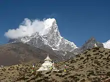 Dingboche (दिङबोचे) 27°53′N 86°49′E is a Sherpa village in the Khumbu region of north eastern Nepal in the Chukhung Valley. Its population was estimated at approximately 200 in 2011. It is situated at an altitude of 4,410 metres (14,470 ft).[1]
