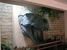 If the ride is busy, then guests will first wind though an outdoor area before entering the first section of the indoor queue. Once inside the first section, guests will see several small exhibits including a display of small fossils, modern animals that can be traced back to the dinosaur ages, and evidence for the several theories of mass extinction.