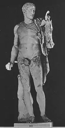 The Greeks and Romans credited Diomedes with the foundation of several Greek settlements in Magna Graeca in southern Italy: Argyrippa or Arpi, Aequum Tuticum (Ariano Irpino), Beneventum (Benevento), Brundusium (Brindisi), Canusium (Canosa), Venafrum (Venafro), Salapia, Spina, Garganum, Sipus (near Santa Maria di Siponto),[37] Histonium (Vasto), Drione (San Severo), and Aphrodisia or Venusia (Venosa). The last was made as a peace-offering to the goddess, including temples in her honor.[38]