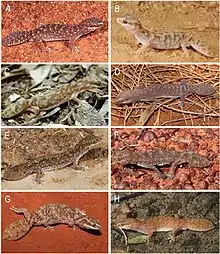 The genus Diplodactylus consists of 27 gecko species commonly referred to as stone or fat-tailed geckos. Species within the genus are morphologically similar but genetically distinct.[6] For example, Diplodactylus kenneallyi, Diplodactylus savage, Diplodactylus pulcher and Diplodactylus conspicillatus all share similar morphological traits. As a result, many Diplodactylus species have been reclassified and redescribed over the years to more accurately represent the diversity within the genus.[5]