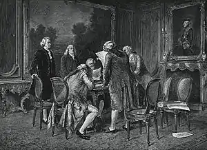 In March 1778, Gérard de Rayneval sailed to America with d'Estaing's fleet; he received his first audience of Congress on August 6, 1778, as the first accredited Minister from France to the United States.[23]
