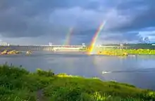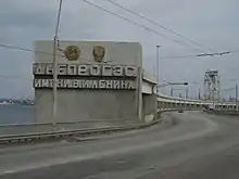 The Dnieper Hydroelectric Station (Ukrainian: ДніпроГЕС - DniproHES, Russian: ДнепроГЭС - DneproGES, also known as Dneprostroi Dam) is the largest hydroelectric power station on the Dnieper River, located in Zaporizhzhia, Ukraine. It is the fifth step of Dnieper hydroelectric stations cascade that provides electric power for Donets–Kryvyi Rih Industrial region.