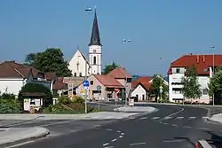 The local parish church is dedicated to the Holy Name of Mary and belongs to the Roman Catholic Diocese of Celje. It is a Neo-romanesque building with a triple nave, built on the site of two older churches in 1865.[3]