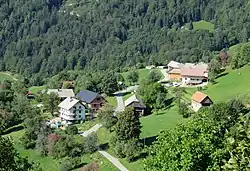 Dolenja Žetina (pronounced [dɔˈleːnja ʒɛˈtiːna]; in older sources also Dolenja Šetina,[2] German: Doleinaschettina[2]) is a dispersed settlement below Mount Blegoš in the Municipality of Gorenja Vas–Poljane in the Upper Carniola region of Slovenia.[3] It is a clustered village on a low terrace in the foothills of Mount Koprivnik.[4] There are many springs in the area and there are abandoned mills in the two ravines below the settlement.[5]