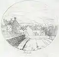 Large farmhouse in Dolgellau, woman feeding chickens in yard, 1815 by Cornelius Varley (1781–1873) and engraver Francis Stevens