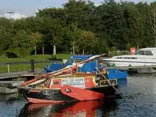 Donald Attig became the first person to complete the entire River Erne Navigation single-handed in an engineless live aboard boat. He used the same boat for this effort as was used in 2007 and 2008. There are enough hazards on the Erne Navigation to make passage in an engineless boat large enough to be liveaboard a world-class challenge. The Northern Ireland tourist site warns that Upper Lough Erne is a shallow maze and that waves on Lower Lough Erne can reach open-sea dimensions.[31] Violent wind shears from the cliffs of Mago can create grave difficulties for full-powered cruisers at any time. All this combines to create a formidable challenge for an engineless boat that has the windage connected with live-aboard accommodations. This Benchmark Record Establishing effort started at Belturbet, Co Cavan August 6, at 6:30 P.M.[32] It was attended by a number of dignitaries. The effort was completed Sunday, August 30 at 7:45 P.M. at the Public dock in Belleek, County Fermanagh.[33][34][35]