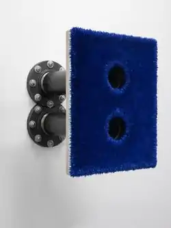 As a painter, Moffett extends the traditional two-dimensional frame through non-traditional techniques such as prying open the canvas to paint the backside, perforating or suturing the painting's surface, or loading it with paint forced into extreme textures. At other times, he transposes paintings into screens by incorporating video projections onto the canvas.[2][3][4][5]
