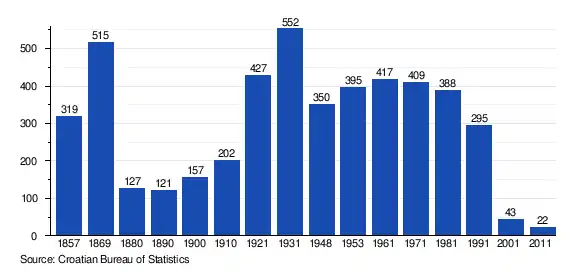 The 1991 census[2] recorded that 92.20% of the village population were ethnic Serbs (272/295), 6.44% were Croats (19/295) while 1.36% were of other ethnic origin (4/295).