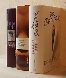 Donna Louise Tartt (born December 23, 1963)[2] is an American author. Tartt's novels are The Secret History (1992), The Little Friend (2002), and The Goldfinch (2013).[3] Tartt won the WH Smith Literary Award for The Little Friend in 2003 and the Pulitzer Prize for Fiction for The Goldfinch in 2014.[4] She was included in Time magazine's 2014 "100 Most Influential People" list.[5]