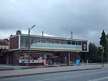 The ground-breaking ceremony for the renovation of Horde station was held on 14 December 2009.[5] The works included the raising of platforms, construction of three lifts, the installation of a passenger information system for mobility-impaired passengers and the renewal of the access tunnel. The old station building was demolished. In its place a developer has built a new two-floor building with a row of shops and a level for parking. The demolition of the dilapidated building built in the 1950s began on 29 March 2011.[6] The old station was heritage-listed in the list of monuments of Dortmund. However, this did not prevent the demolition of the old station building and the establishment of a substantially different building including the complete redevelopment of the entire station forecourt.