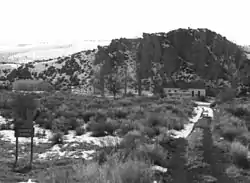 The Double-O Ranch was established in 1875 by Amos W. Riley and James A. Hardin. It was one of the first permanent pioneer settlements in Harney County. In June 1878, during the Bannock War, the original ranch buildings were burned by a Bannock and Paiute war party. On 23 October 1878, the only pitched battle of that war occurred near Silver Creek on the northern edge of the Double-O Ranch.[4][5][6][7]