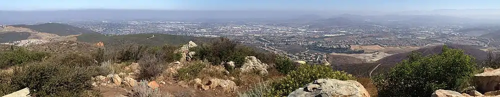 On a clear day, the peak offers views of distant places such as Mexico, Downtown San Diego, San Clemente Island, Catalina Island, the Palos Verdes Peninsula, the Santa Ana Mountains, and the San Bernardino Mountains. A telescope is located at the peak for use by visitors.