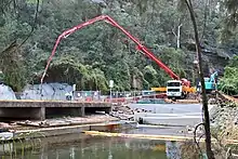 At this location also are the Douglas Park twin bridges, carrying northbound and southbound lanes of the F5 Freeway over the Nepean River. This bridge was opened in 1980, as part of the extension of the Hume Highway from Campbelltown to Yanderra.[18] In 2007, Douglas Park residents expressed concern that coal-mining in the area would cause the collapse of either or both of these bridges, possibly resulting in many deaths.[19]