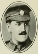 On returning to England in mid-1915 he was presented with the medal by King George V at a ceremony at Buckingham Palace in July 1915, and promoted to the rank of Company Sergeant-Major,[2] and served as a training officer with the London Rifle Brigade's 3rd Battalion, until receiving a commission as a 2nd Lieutenant with the 3rd Battalion of the 8th London Regiment (Post Office Rifles), T.F., in February 1916.[3]