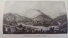 It was soon renamed after Major William Downie (1820-1893), the town's founder. Downie was a Scotsman who had led an expedition of nine miners, seven of them African American men, up the North Fork of the Yuba River in the Autumn of 1849.[5] At the present site of the town they struck rich gold, built a log cabin, and settled in to wait out the winter.[6] By 1850, Downieville had 15 hotels, 4 bakeries, 4 butcher shops, and numerous saloons.[7]