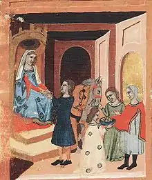 ![]() Drahomíra hiring the assassins of Saint Ludmila, Chronicle of Dalimil, c. 1330 | |