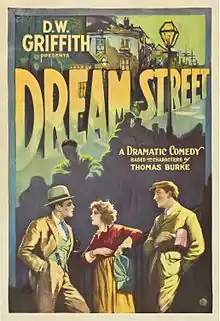 Dream Street is a 1921 American silent romantic drama film directed by D. W. Griffith, and starring Carol Dempster, Charles Emmett Mack, and Ralph Graves in a story about a love triangle set in London, and based on two short stories by Thomas Burke, "Gina of Chinatown" and "Song of the Lamp". The cast also features Tyrone Power, Sr.