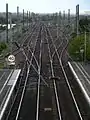 View from the railway station bridge, looking towards where the branch line to North Berwick diverges