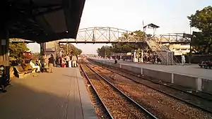 The station is a stop for a few trains going "upcountry," and all "downcountry" express trains. In the past, it was a junction on the Karachi Circular Railway.[3] The station has a booking office, train shed, tuck shop, mosque, advance reservation office, and a parking lot.