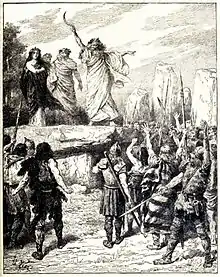 In about 750 CE, the word druid appears in a poem by Blathmac, who wrote about Jesus, saying that he was "better than a prophet, more knowledgeable than every druid, a king who was a bishop and a complete sage."[5] The druids appear in some of the medieval tales from Christianized Ireland like "Táin Bó Cúailnge", where they are largely portrayed as sorcerers who opposed the coming of Christianity.[6] In the wake of the Celtic revival during the 18th and 19th centuries, fraternal and neopagan groups were founded based on ideas about the ancient druids, a movement known as Neo-Druidism. Many popular notions about druids, based on misconceptions of 18th-century scholars, have been largely superseded by more recent study.[7]