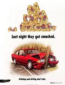 Drunk driving (or drink-driving in British English[1]) is the act of driving under the influence of alcohol. A small increase in the blood alcohol content increases the relative risk of a motor vehicle crash.[2]