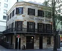 The Dundee Arms Hotel, commonly called The Dundee Arms, is a heritage-listed pub located at 171 Sussex Street, in the Sydney central business district, in the City of Sydney local government area of New South Wales, Australia. It was built in 1860. It was added to the New South Wales State Heritage Register on 2 April 1999.[1]