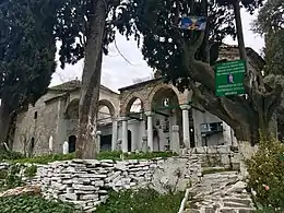 Following the annexation of Thessaly to Greece in 1881, the tekke continued to function without interruption.[3] According to the archaeologist Frederick Hasluck, in c. 1888 there were 55 dervishes living in the tekke, while in 1892, the Greek novelist Andreas Karkavitsas visited the shrine and wrote about his experiences there in the Estia newspaper.[2] In 1925, following the abolition of the sufi orders in Turkey by Mustafa Kemal,[1] the tekke was taken over by the Albanian Bektashis, who remained there until 1973, when the 33rd and last abbot (baba) died.[1][2] In 1925, many Albanians who were hostile to the Albanian King Ahmet Zogu, who had persecuted them, found refuge in the tekke on behalf of the Greek state. In the mid-1930s, the tekke was inhabited by 6 elderly Albanian dervishes under their leader Kiaxem Baba. The dervishes were known to be very hospitable. Outside the courtyard of the tekke there was a small mosque, called the "Temple of Durbalos".