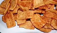 Duros may be microwaved, but the best results are achieved when they are deep fried.[2] Ready-to-make duros are often sold in supermarkets, and simply require being fried in oil.[3] They are typically seen served by street vendors in a plastic bag and topped with salsa and chili, lime, salt, mixed in soda water or with hot sauce and lemon juice that is sprayed into the bag, then finished with chili powder.[4]