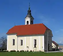 The local church is dedicated to Saint Nicholas and belongs to the Parish of Cerklje na Gorenjskem.[4] It was first mentioned in sources from 1485,[5] and the current building dates from 1755.[2] The main altar was created by Jurij Tavčar (1820–1892) and features a 1755 painting by Valentin Metzinger (1699–1759).[2]
