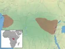 The dwarf scaly-tailed squirrel (Anomalurus pusillus) is a species of rodent in the family Anomaluridae.[2] It is found in Cameroon, Central African Republic, Republic of the Congo, Democratic Republic of the Congo, Equatorial Guinea, Gabon and Uganda. The species is nocturnal and arboreal and lives in subtropical or tropical lowland rainforest. Membranes attached to its limbs and tail enable it to glide between trees. This squirrel is currently not considered to be threatened by habitat destruction; "much of the habitat within parts of the known range of this species is relatively intact, and the species is unlikely to be experiencing any significant declines."[1]