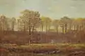 In 1876 Tryon decided to advance his skills through a formal study of art. He sold all of his paintings at auction and, with the help of a benefactor, traveled to France with his wife. He enrolled in the atelier of Jacquesson de la Chevreuse, and took classes at the École des Beaux-Arts. He also received instruction from Charles-François Daubigny, Henri Harpignies, and Jean Baptiste-Antoine Guillemet. Impressionism was blossoming in France all around Tryon, but he was not swayed by the new style and remained comfortably within the realm of the Barbizon school.