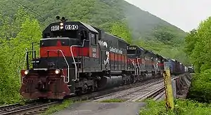 ![]() Boston & Maine 690 (ex Illinois Terminal 2301) with Train EDRJ (East Deerfield–Rotterdam Jct) about to enter Hoosac Tunnel | |||||||||||||||||||||||||