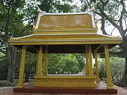 In May 1967, the Thai Pavilion, a gift of King Bhumibol Adulyadej and Queen Sirikit of Thailand in 1964, was assembled just in time for King Adulyadej's dedication of the pavilion on June 6, 1967; it is located between Lincoln Hall and Jefferson Hall, in front of Hale Kuahine.[19]