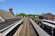 ![]() Chappel and Wakes Colne railway station (far right-hand track) and the East Anglian Railway Museum | |