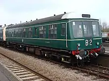 Two Class 101 DMU cars are in operation at the museum. The units are owned by Diesel Unit Preservation Associates Ltd. DUPA own one other Class 101 unit (E51505 at Ecclesbourne Valley Railway) and two Class 108 units (E50599 at Ecclesbourne Valley Railway and M56223 at Llangollen Railway). Car number E56358 is painted in BR Blue with full yellow ends while E51213 is painted in BR Blue Grey with full yellow ends. Both cars have had their original pattern tungsten lighting reinstated. No. E56358 and No. E51213 were regular performers on the Marks Tey to Sudbury Line until 1993 when all 1st generation units were withdrawn in East Anglia and were transferred to Manchester, both withdrawn from service in 2001, then stored at MOD Shoeburyness before being purchased in 2003. They represented the Class 101 DMU class at Railcar50. The unit is mainly used on Day Out With Thomas Events where it runs as Daisy The Diesel Multiple Unit.