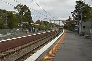 ![]() Westbound view from Platform 3, with the Alamein line flyover in the background, in May 2014 | |||||||||||||||||||||||||||||||||||||||||||||||||||||||||||||||